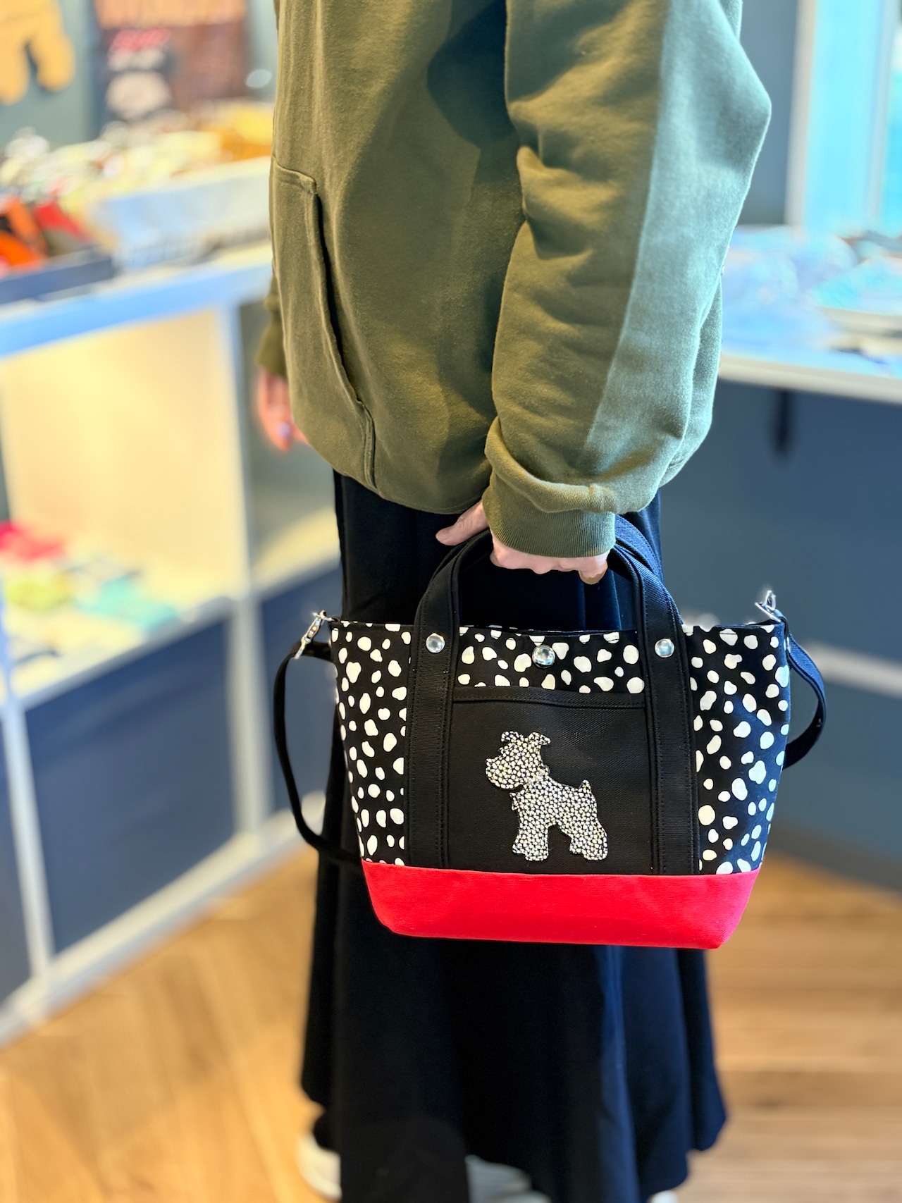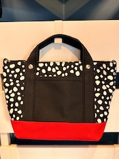 パキッとしたレッドとダルメシアン柄を使ったトートバッグです。