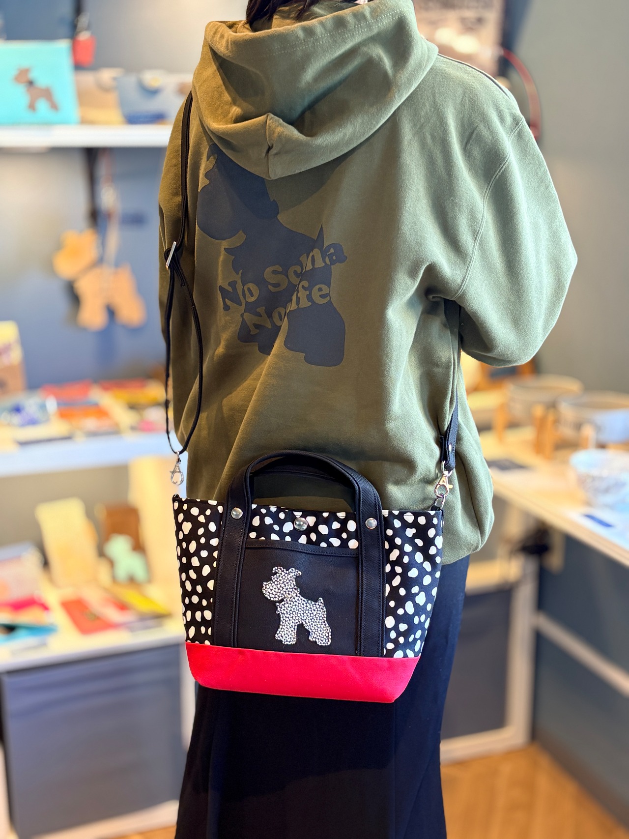 中トートバッグ ★レッド×ダルメシアン柄 立ちシュナ:ダルメシアン柄 中布:ブラック