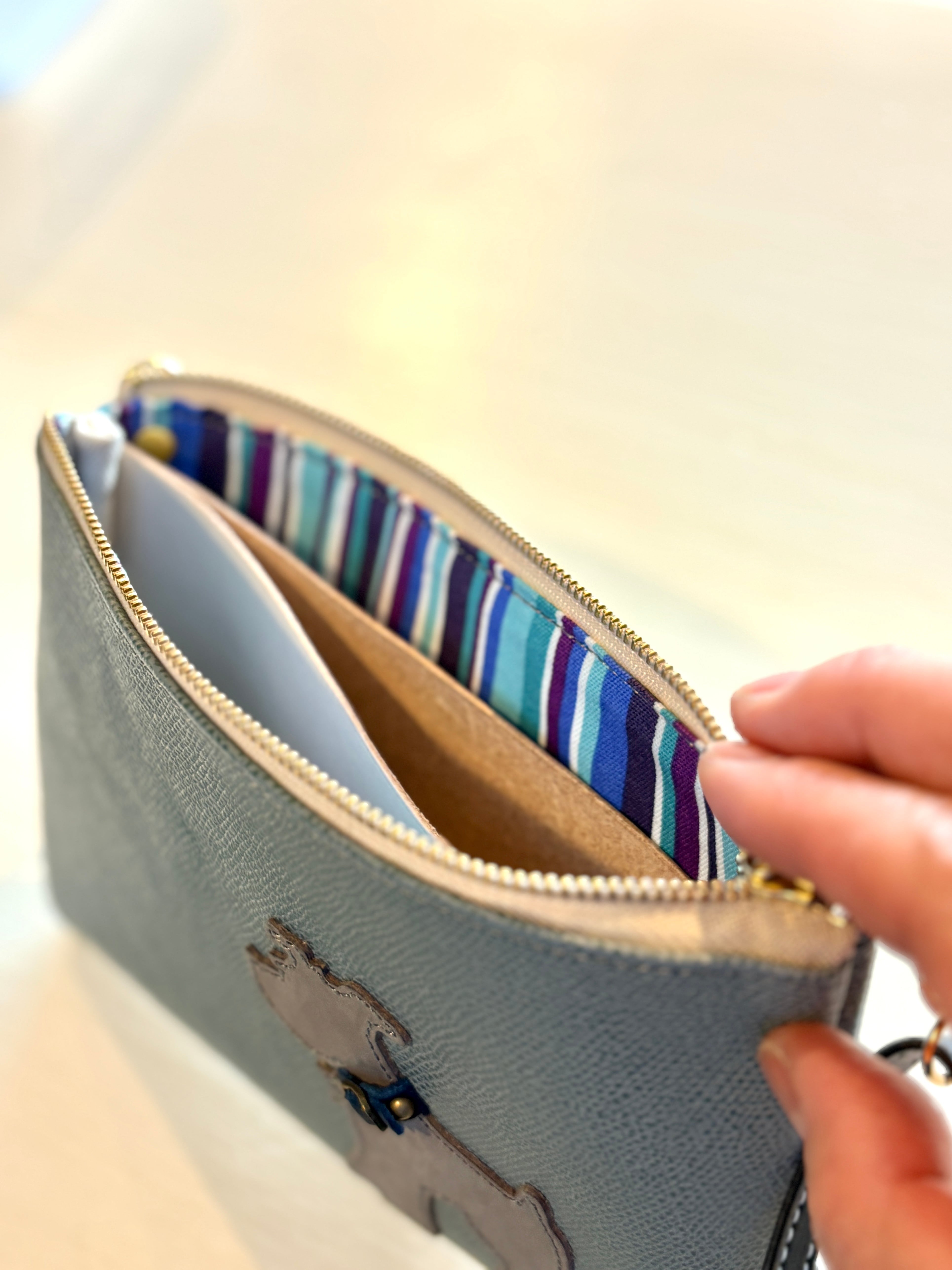 お財布ショルダー パウダーブルー&グレー 【立ちシュナ】
