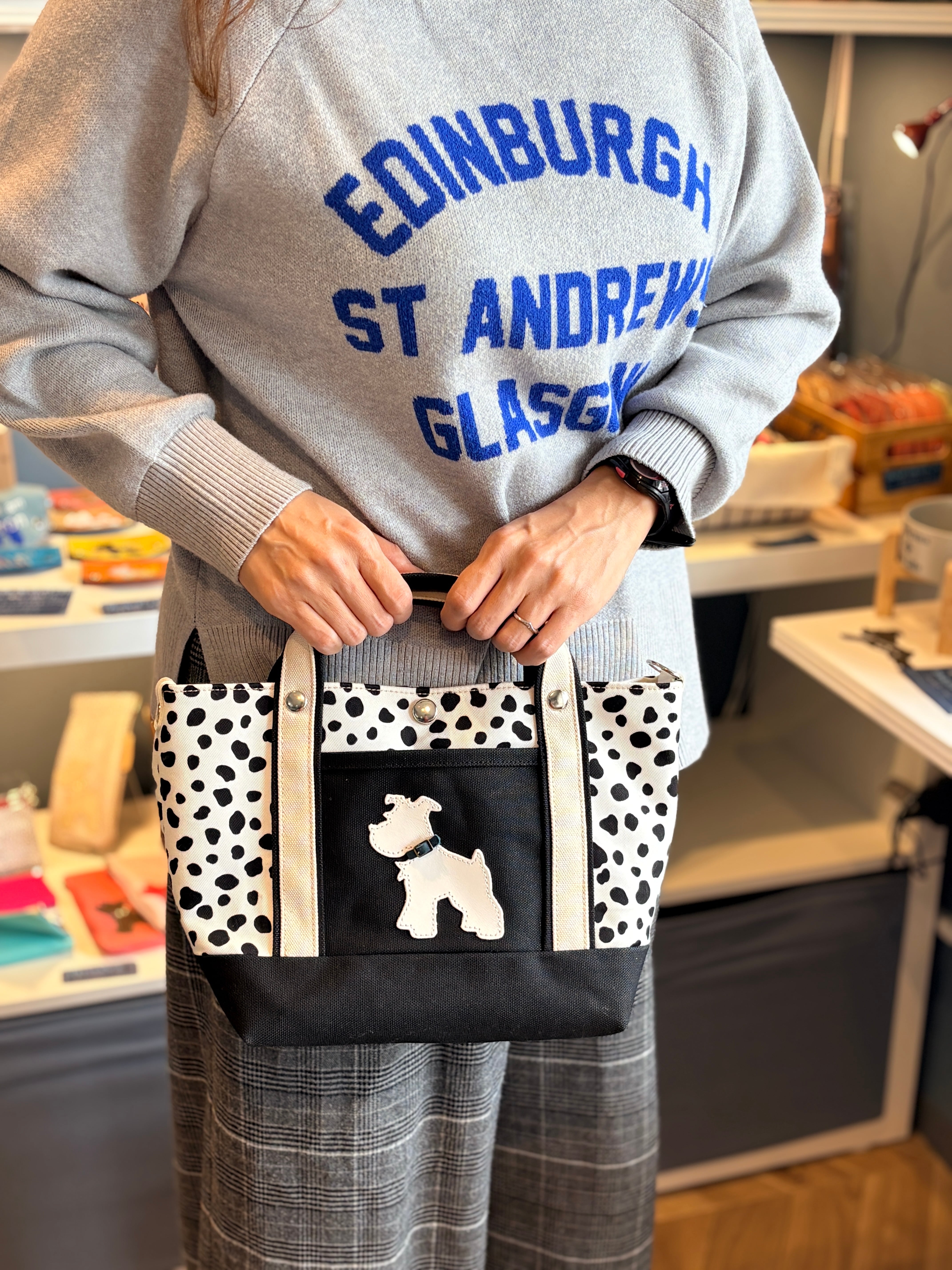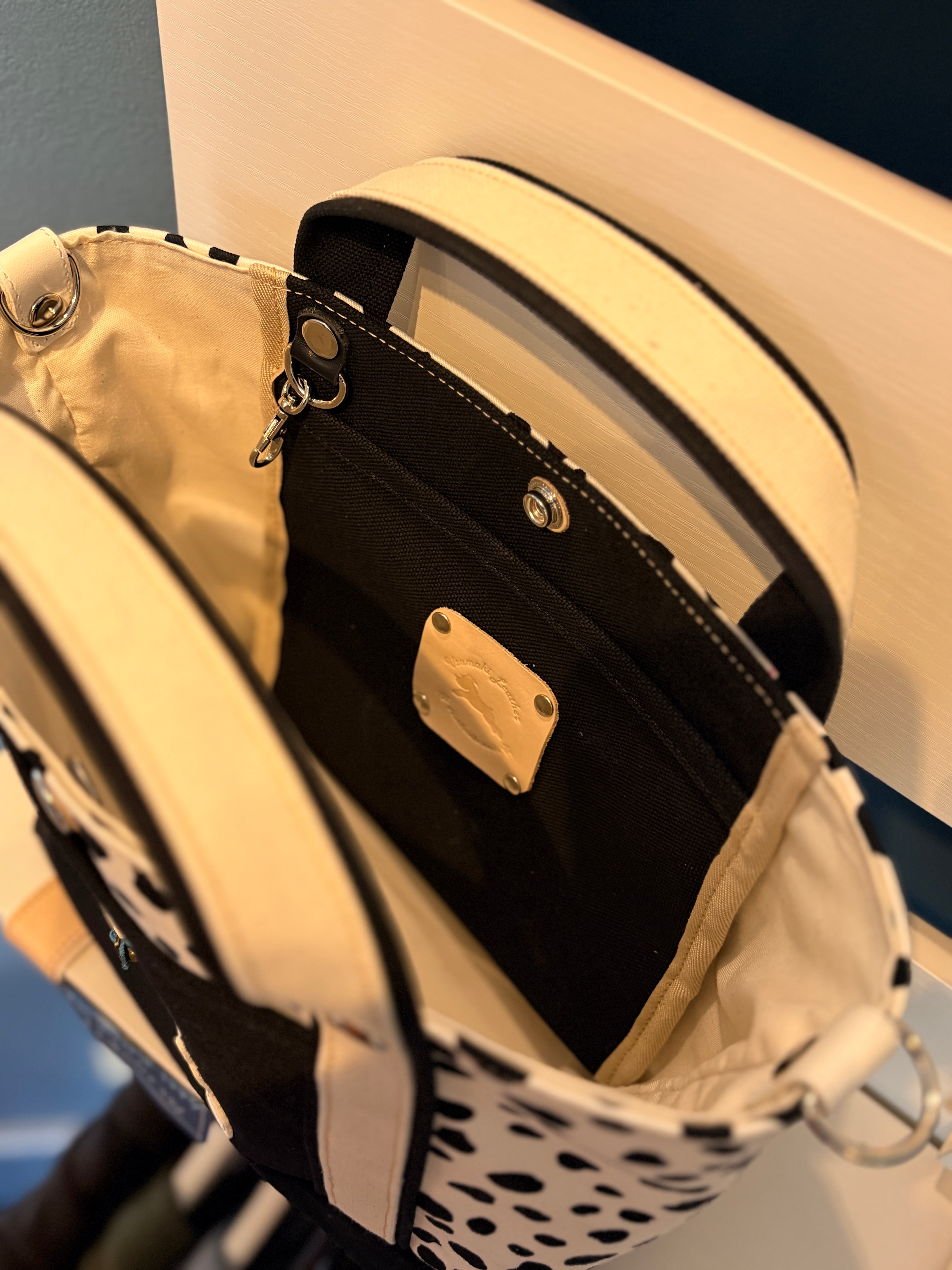 ダルメシアン柄とブラックを使ったトートバッグです。