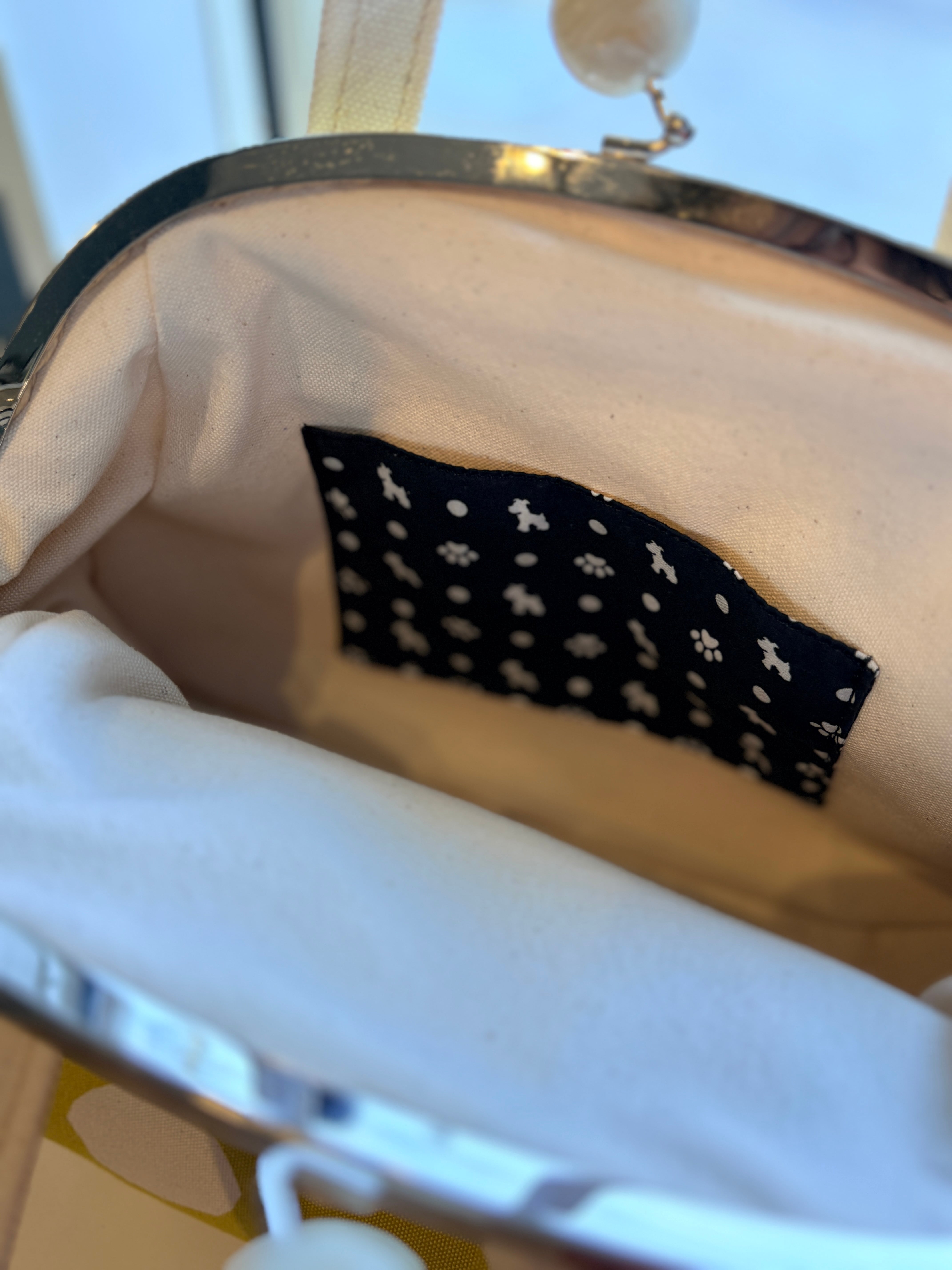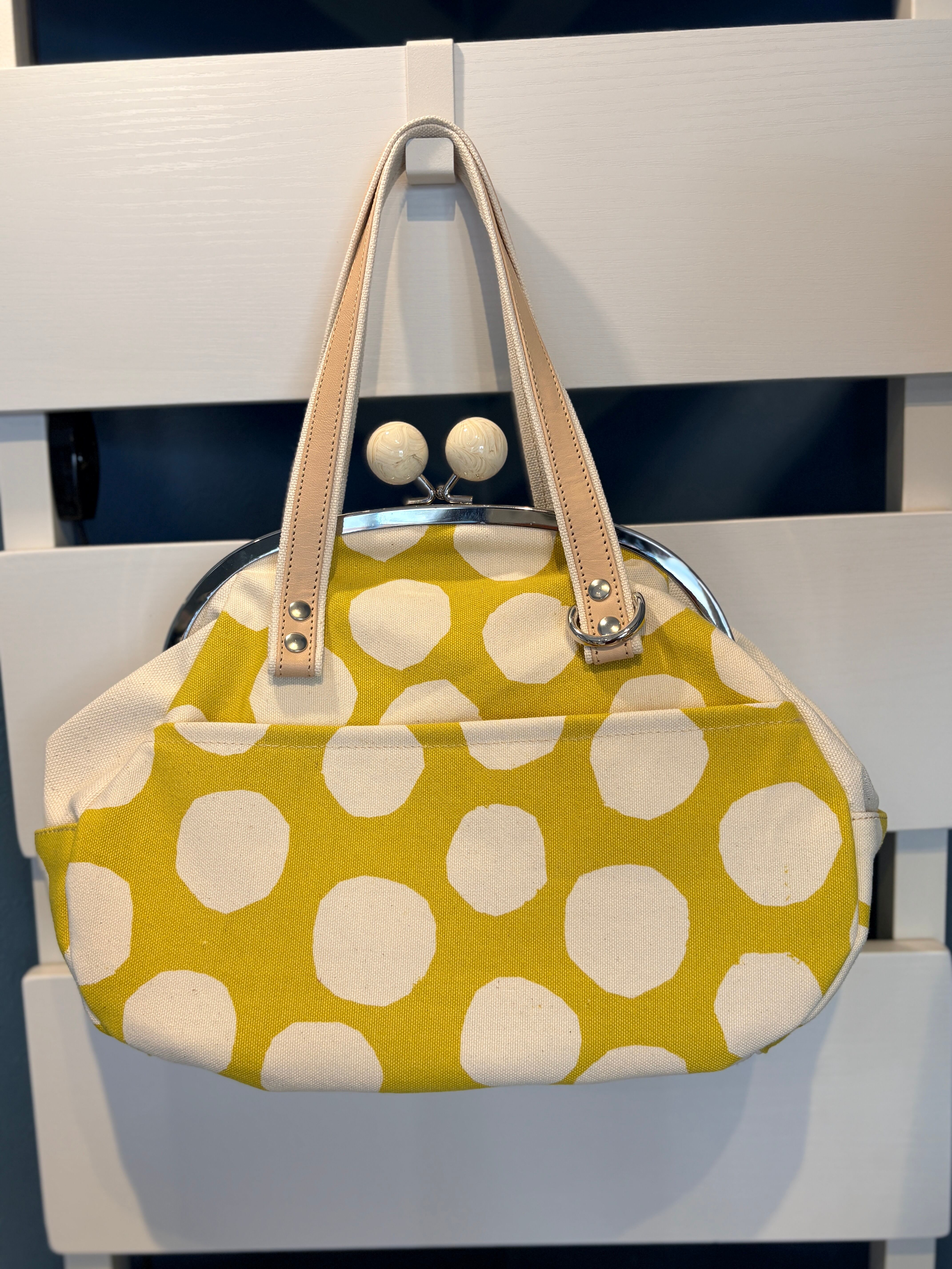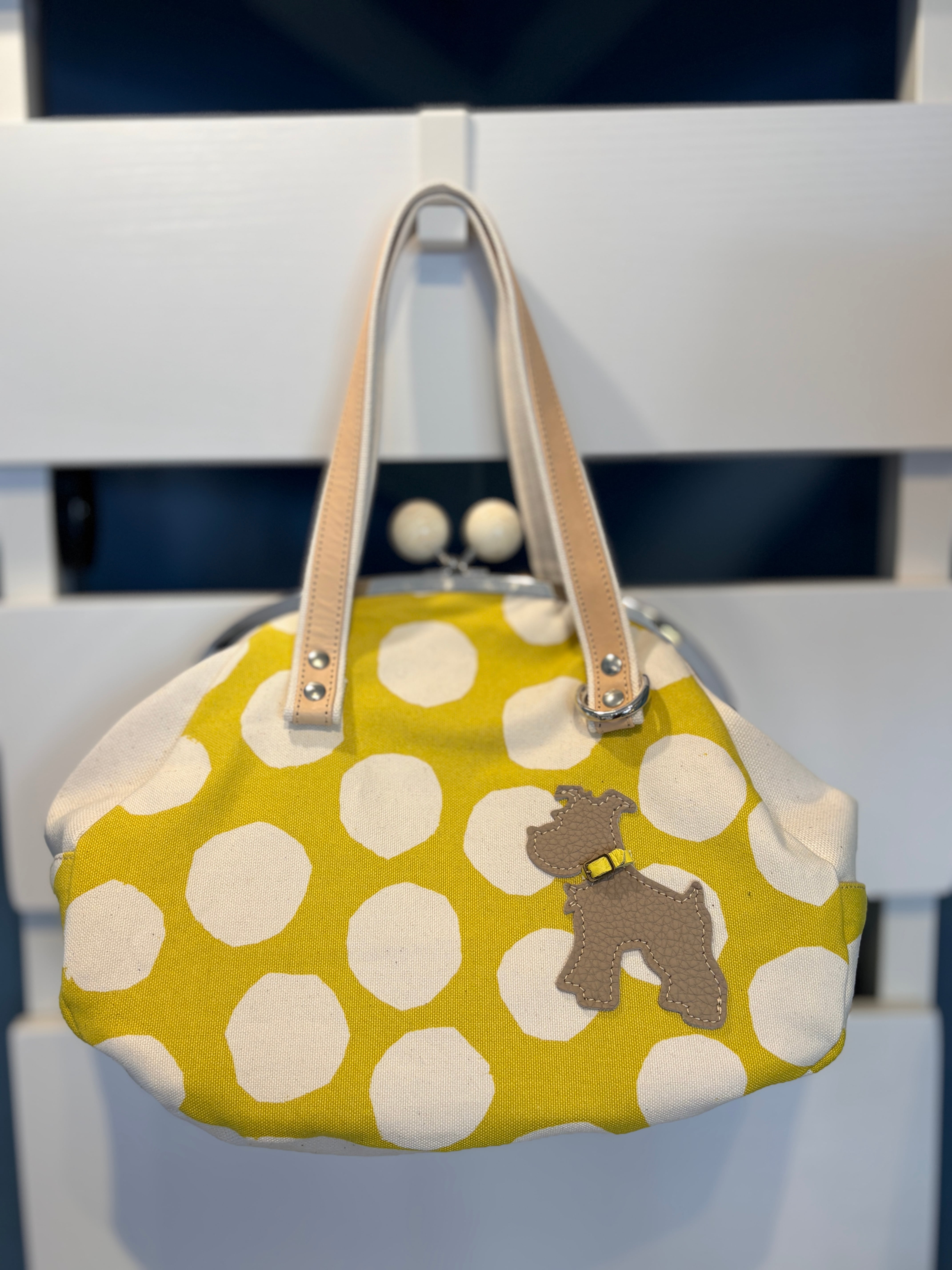 バッグ:イエローにホワイト水玉×生成り